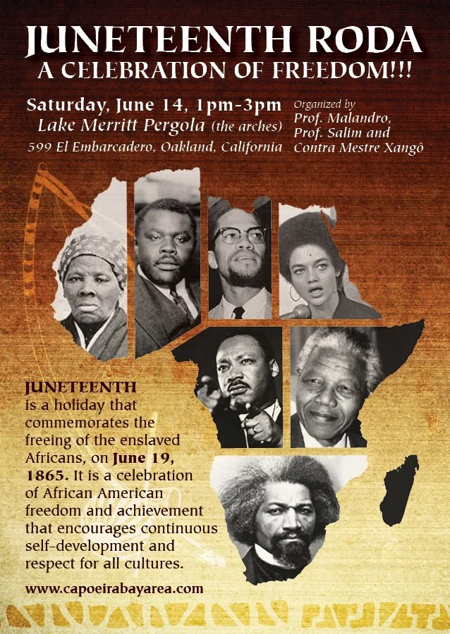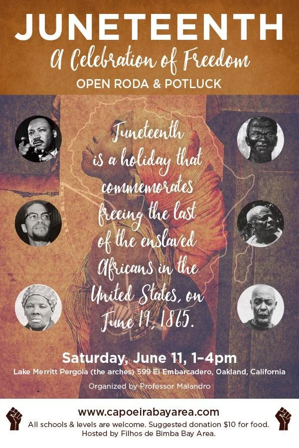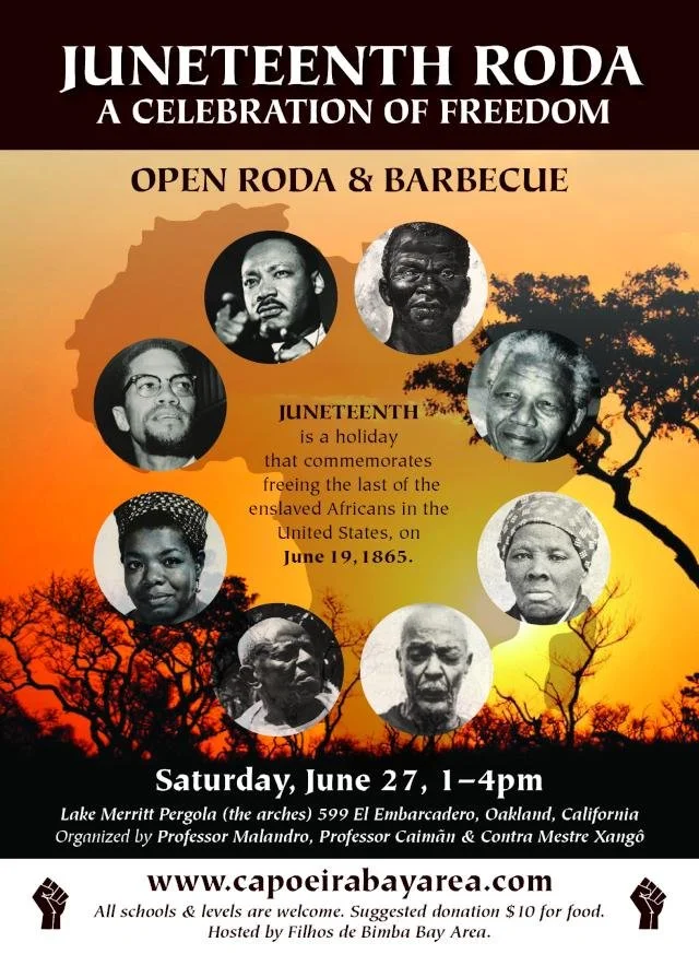 JUNETEENTH is the oldest known celebration commemorating the ending of slavery in the United States. We celebrate this day with an art form that was once practiced in secret in the slave quarters of Brazil and is now celebrated to honor the resistance against oppression their fight for freedom.